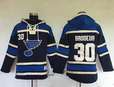 - Men St.Louis Blues 30 Martin Brodeur Navy Blue Sawyer Hooded Sweatshirt Stitched NHL Jersey