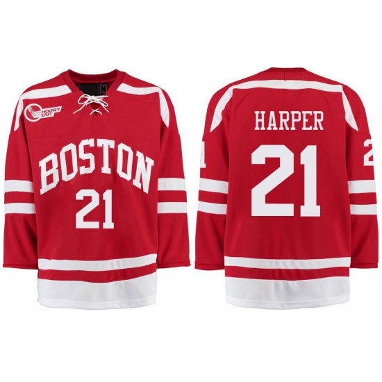 - Boston University Terriers BU 21 Patrick Harper Red Stitched Hockey Jersey