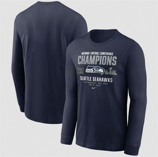 - Men Seattle Seahawks College Navy 2025 NFC Champions Team Nation Long Sleeve T Shirt