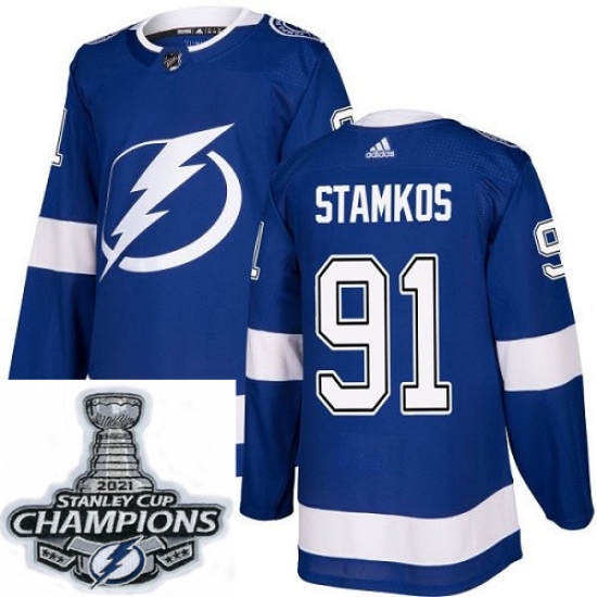 Home>NHL>Tampa Bay Lightning>2021 Champions Jersey>Men Adidas Tampa Bay Lightning 91 Steven Stamkos Authentic Royal Blue Home NHL Stitched 2021 Stanley Cup Champions Patch Jersey