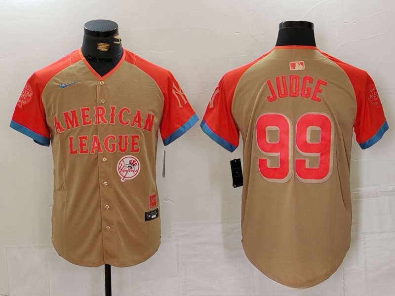 - Men American League 99 Aaron Judge Cream 2024 All Star Elite Stitched Baseball Jersey 2