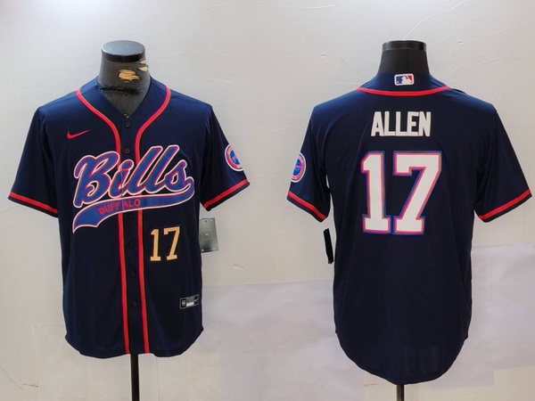 - Men Buffalo Bills 17 Josh Allen Navy Team Cool Base Stitched Baseball Jersey 5