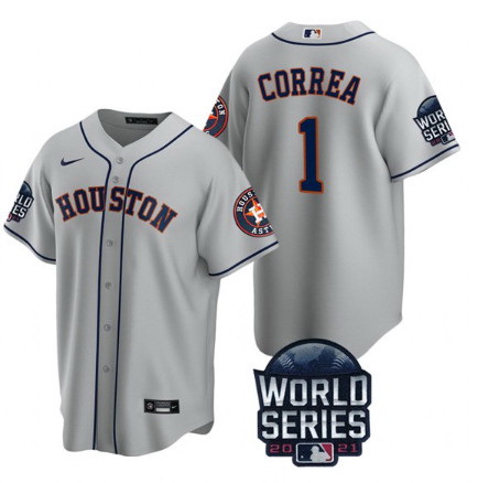 - Men Houston Astros 1 Carlos Correa 2021 Navy World Series Cool Base Stitched Baseball Jersey