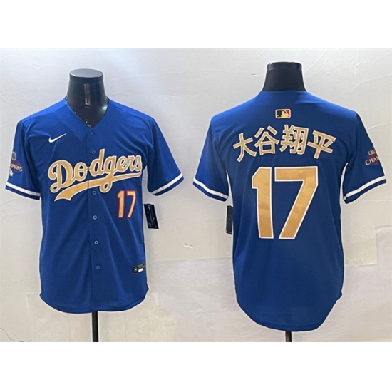 - Men Los Angeles Dodgers 17 Shohei Ohtani Blue Gold Cool Base Stitched Baseball Jersey