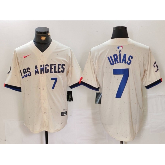 - Men's Los Angeles Dodgers #7 Julio Urias Cream Pinstripe Stitched MLB Cool Base Nike Jersey