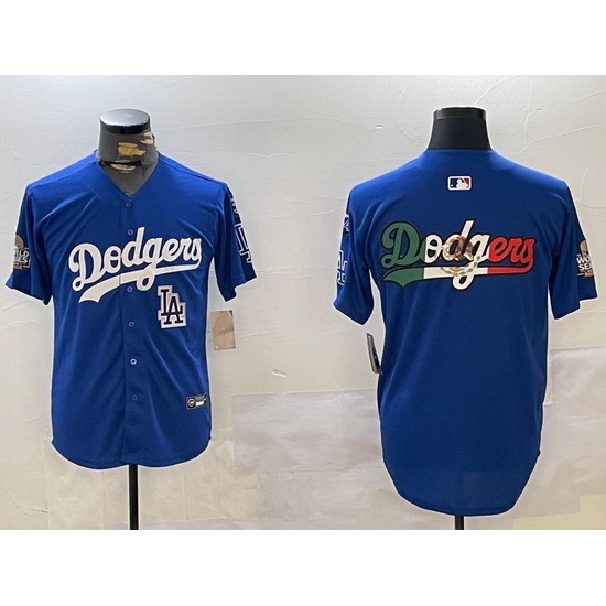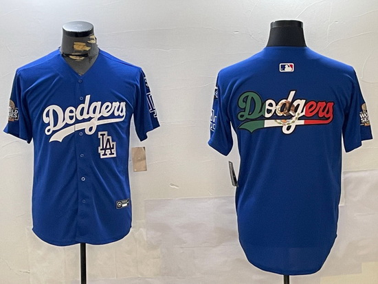 - Men Los Angeles Dodgers Blue Team Big Logo City Connect Cool Base Stitched Baseball Jersey 2