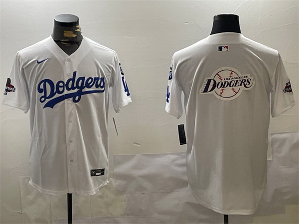 - Men Los Angeles Dodgers 34 White Gold Championship Cool Base Stitched Jersey 1