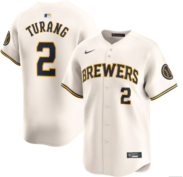 - Men Milwaukee Brewers 0 Brice Turang White Cool Base Stitched Jersey