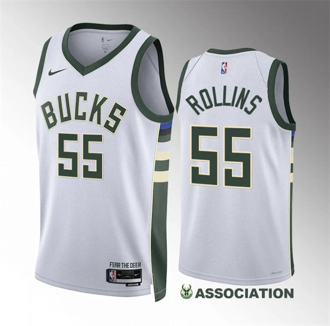 - Men Milwaukee Bucks 55 Ryan Rollins White Association Edition Stitched Basketball Jersey