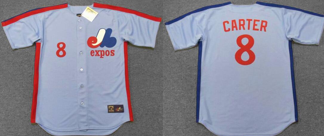- Men's Montreal Expos #8 Gary Carter Jersey Sewn on Baseball Blue Retro jersey