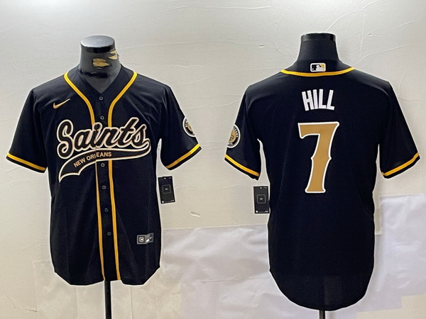 - Men New Orleans Saints 7 Taysom Hill Grey With Patch Cool Base Stitched Baseball Jersey
