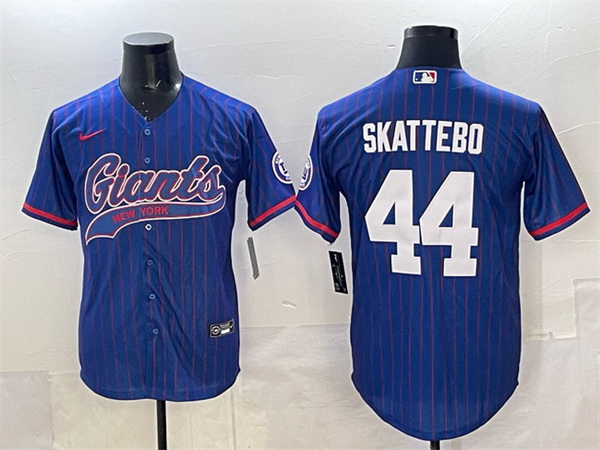 - Men New York Giants 26 Saquon Barkley Blue With Patch Cool Base Stitched Baseball Jersey