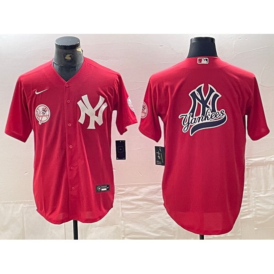 - Men New York Yankees Big Logo Red Cool Base Stitched Baseball Jersey 3
