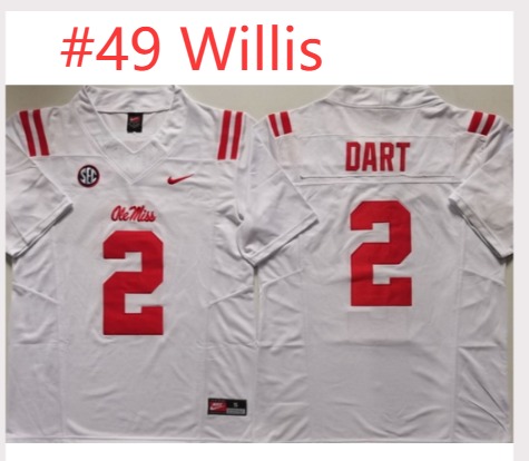 - Men Ole Miss Rebels White #2 Jaxson Dart Light Blue Stitched NCAA Jersey