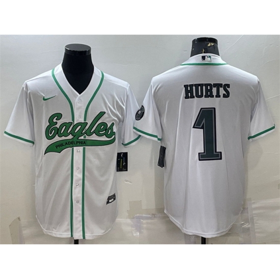 - Men Philadelphia Eagles 1 Jalen Hurts Black With Patch Cool Base Stitched Baseball Jersey