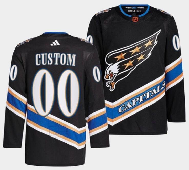 - Men Women Youth Washington Capital Custom Black Reverse Retro Stitched Jersey