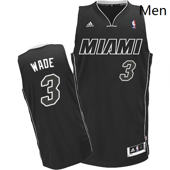 - Mens Nike Miami Heat 3 Dwyane Wade Authentic Black Black Fashion Hardwood Classics NBA Jersey
