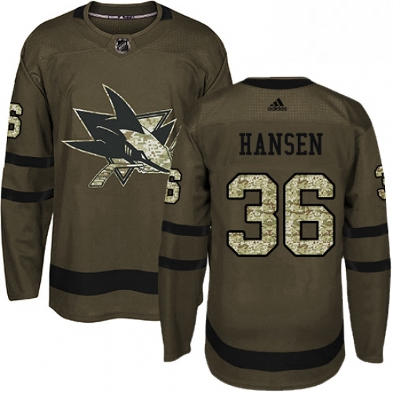 - Mens Adidas San Jose Sharks 36 Jannik Hansen Premier Green Salute to Service NHL Jersey
