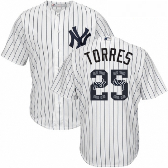 - Mens Majestic New York Yankees 25 Gleyber Torres Replica White Home MLB Jersey