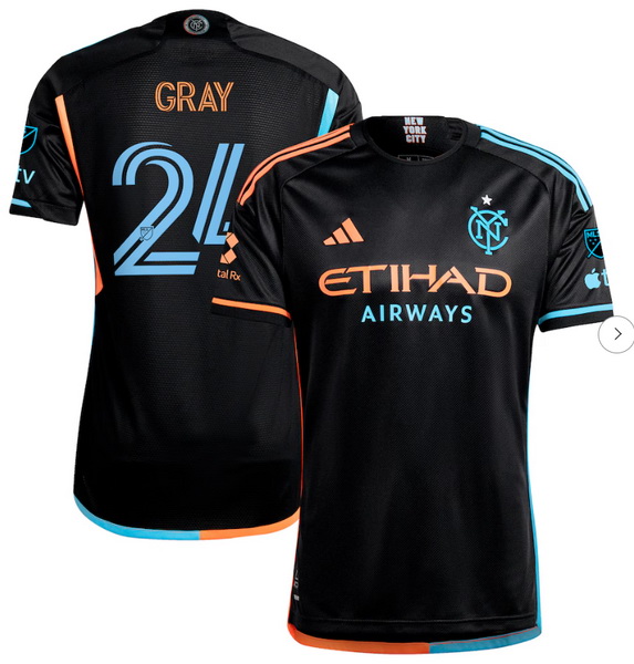 - Men's New York City FC adidas Black 2024 24 7 Kit Replica Custom Jersey