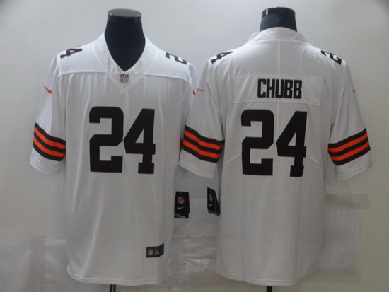 - Cleveland Browns 24 Nick Chubb Men Nike White 2020 Vapor Limited Jersey
