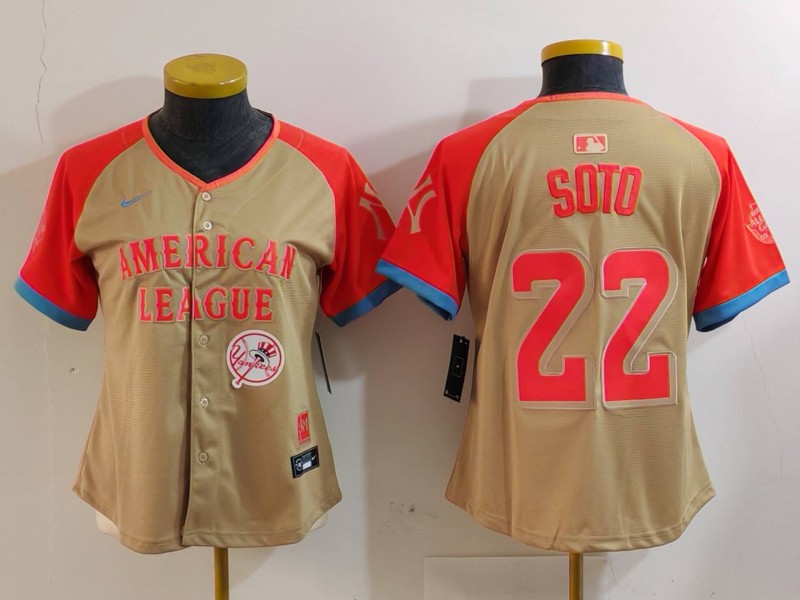 - Women American League 22 Juan Soto Cream 2024 All Star Limited Stitched Baseball Jersey 3
