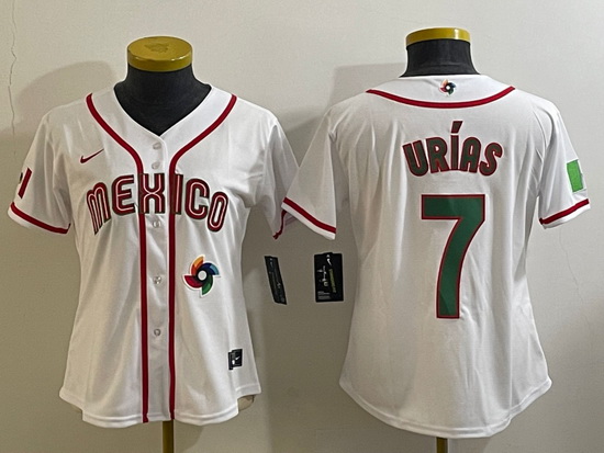 - Men's Mexico Baseball #7 Julio Urias Number 2023 White Blue World Classic Stitched Jerseys
