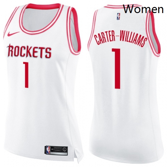 - Womens Nike Houston Rockets 34 Hakeem Olajuwon Swingman WhitePink Fashion NBA Jersey