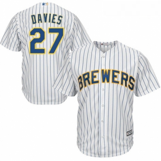- Youth Majestic Milwaukee Brewers 27 Zach Davies Replica White Alternate Cool Base MLB Jersey