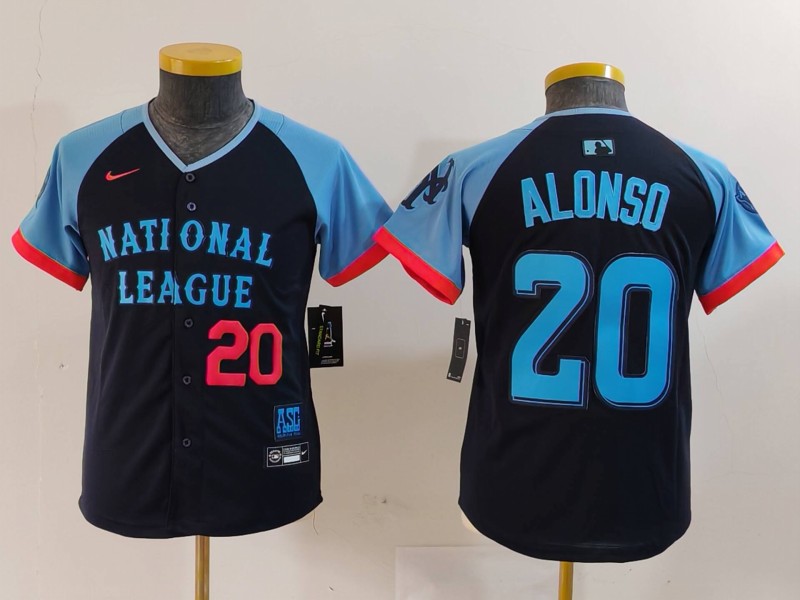 - Youth National League 20 Pete Alonso Navy 2024 All Star Limited Stitched Baseball Jersey 1