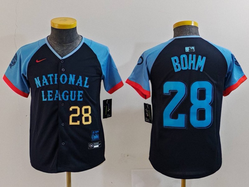 - Youth National League 28 Alec Bohm Navy 2024 All Star Limited Stitched Baseball Jersey