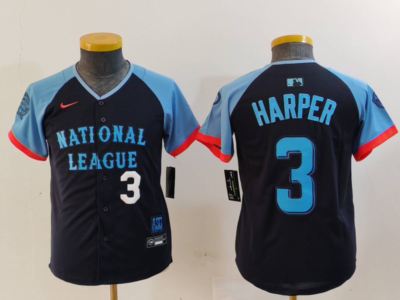 - Youth National League 3 Bryce Harper Navy 2024 All Star Limited Stitched Baseball Jersey 6