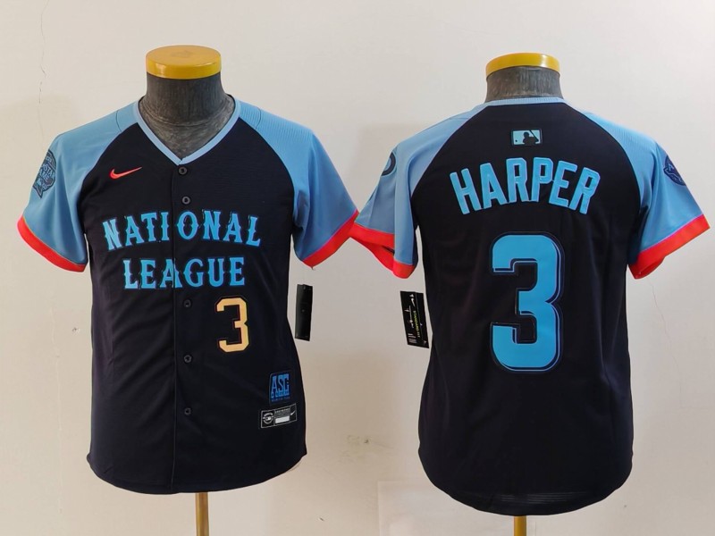 - Youth National League 28 Alec Bohm Navy 2024 All Star Limited Stitched Baseball Jersey 6