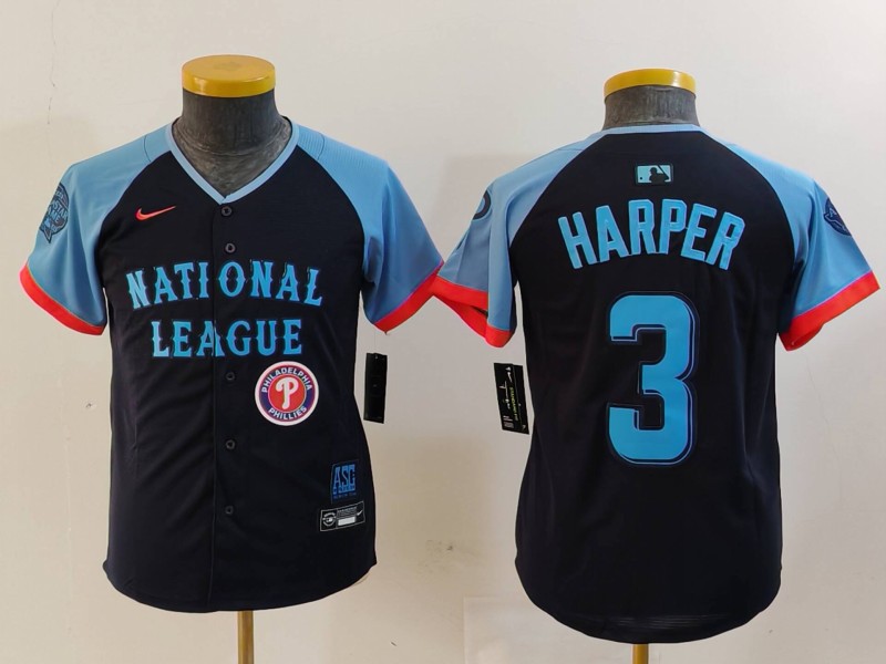 - Youth National League 3 Bryce Harper Navy 2024 All Star Limited Stitched Baseball Jersey 6